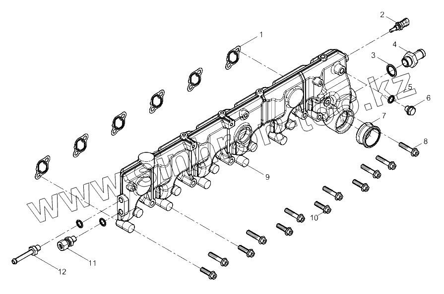 Каталог запасных частей к технике: Weichai WP8 DHP08Q0162. Water Outlet Pipe Group