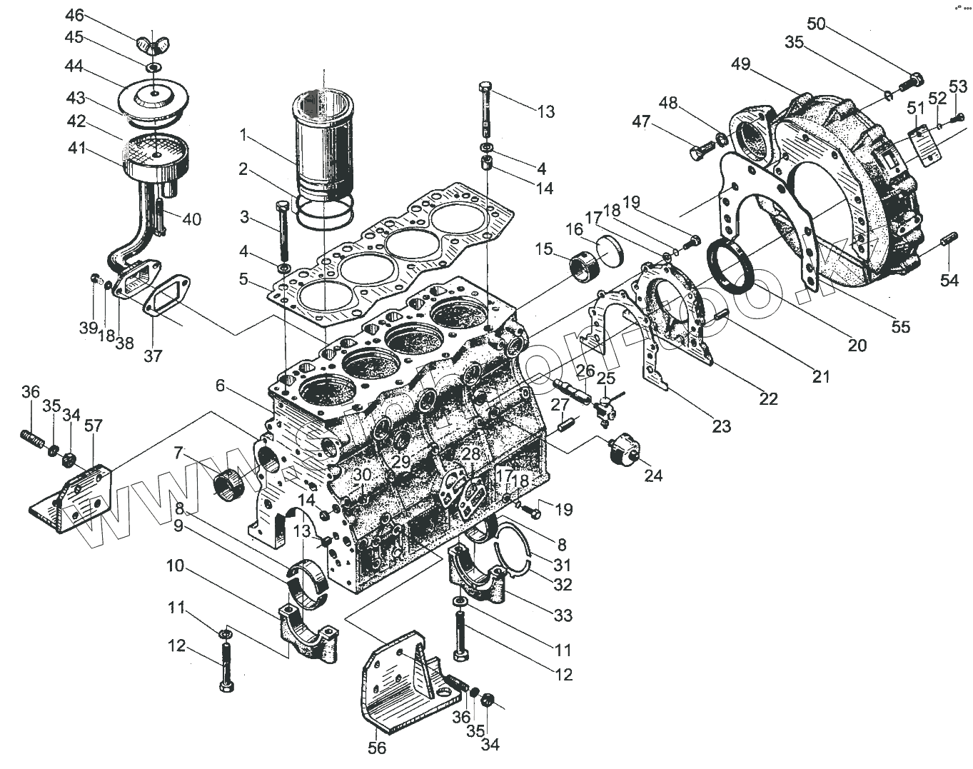 Каталог запасных частей к технике: XINCHAI 485. Блок цилиндров в сборе