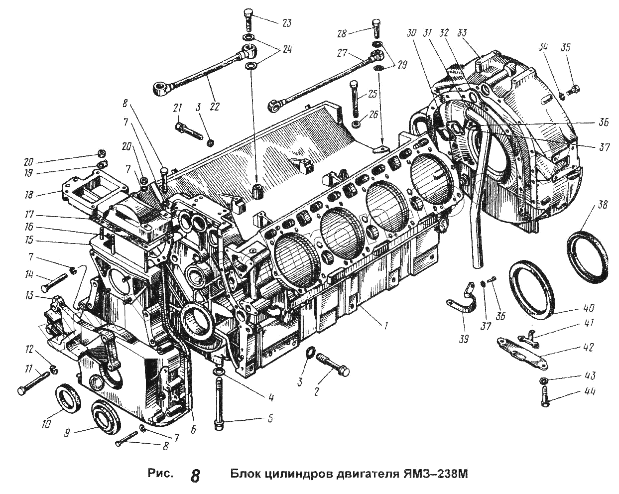 Каталог запасных частей к технике: ЯМЗ Общий (см. мод-ции). Блок цилиндров двигателя ЯМЗ-238М