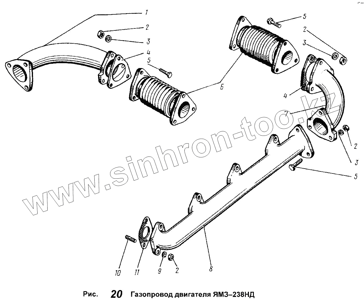 Каталог запасных частей к технике: ЯМЗ Общий (см. мод-ции). Газопровод двигателя ЯМЗ-238НД