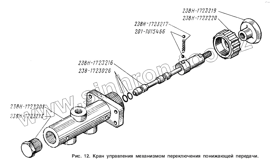 Каталог запасных частей к технике: ЯМЗ Общий (см. мод-ции). Кран управления механизмом переключения понижающей передачи