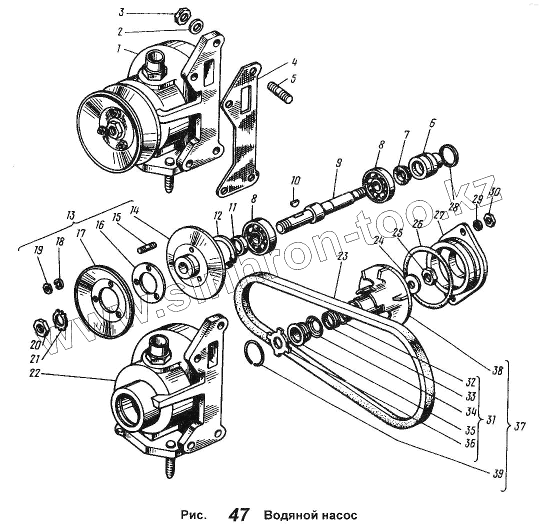 Каталог запасных частей к технике: ЯМЗ Общий (см. мод-ции). Водяной насос