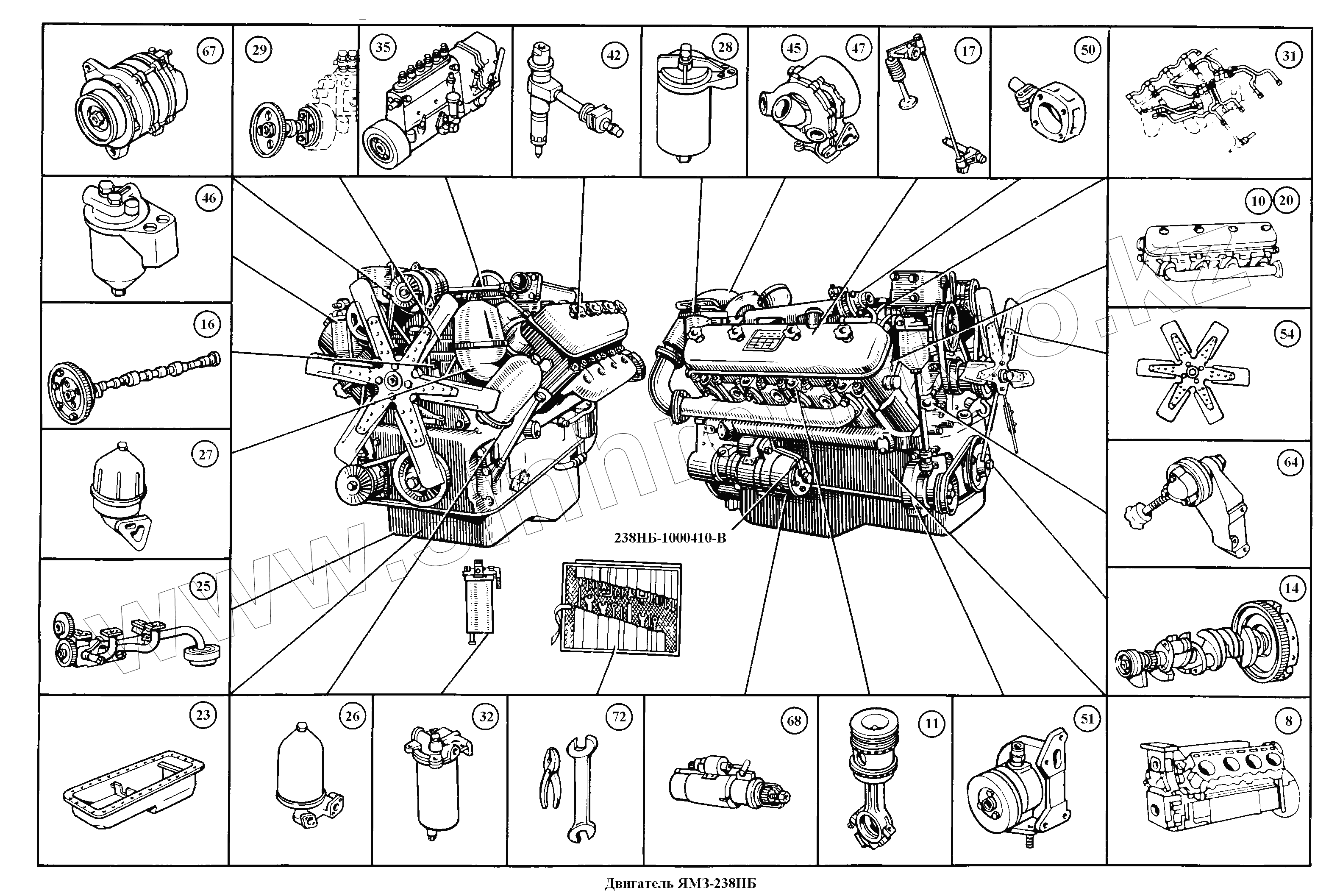 Каталог запасных частей к технике: ЯМЗ-236, -238, -238НБ. Двигатель ЯМЗ-238НБ