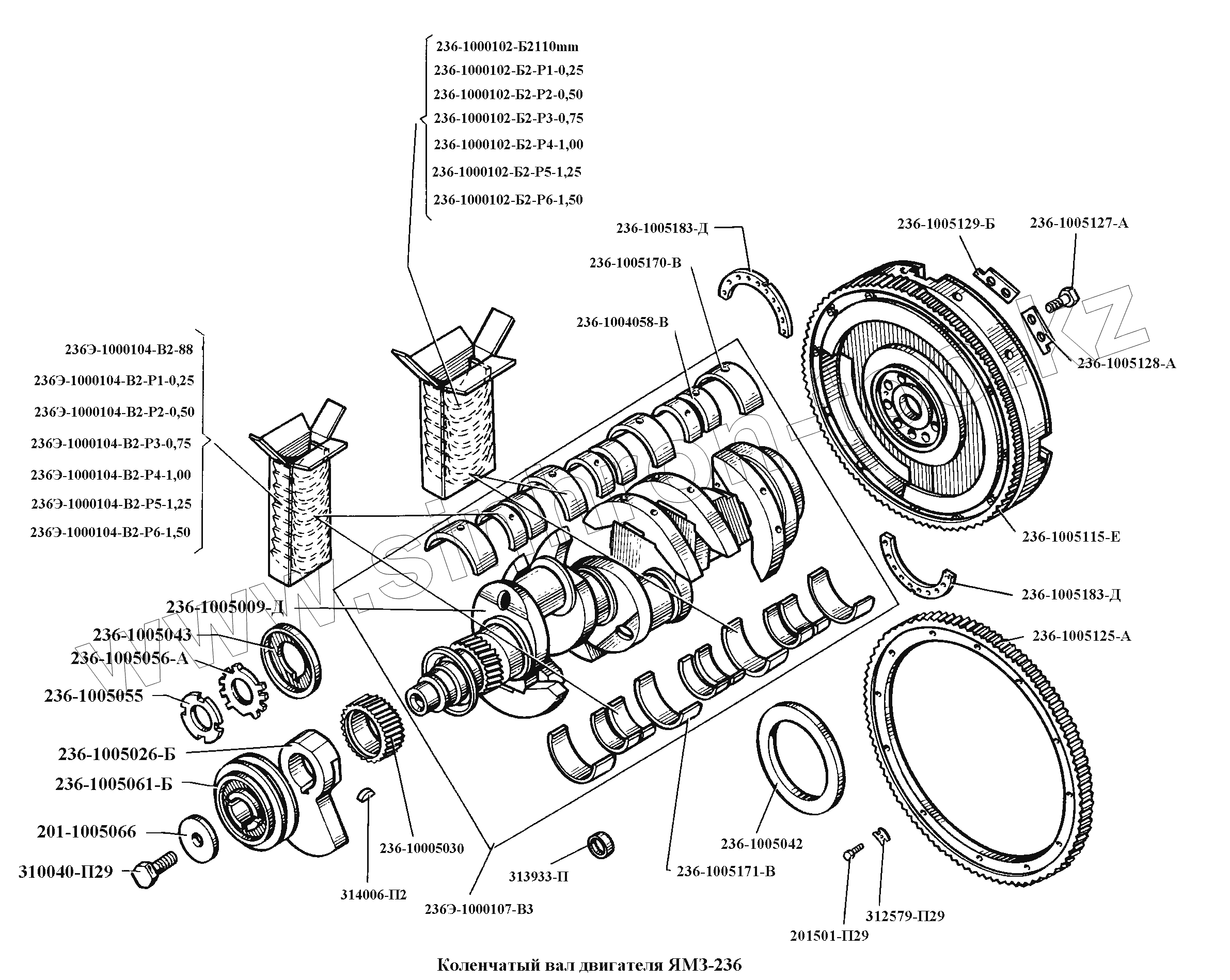 Каталог запасных частей к технике: ЯМЗ-236, -238, -238НБ. Коленчатый вал двигателя ЯМЗ-236