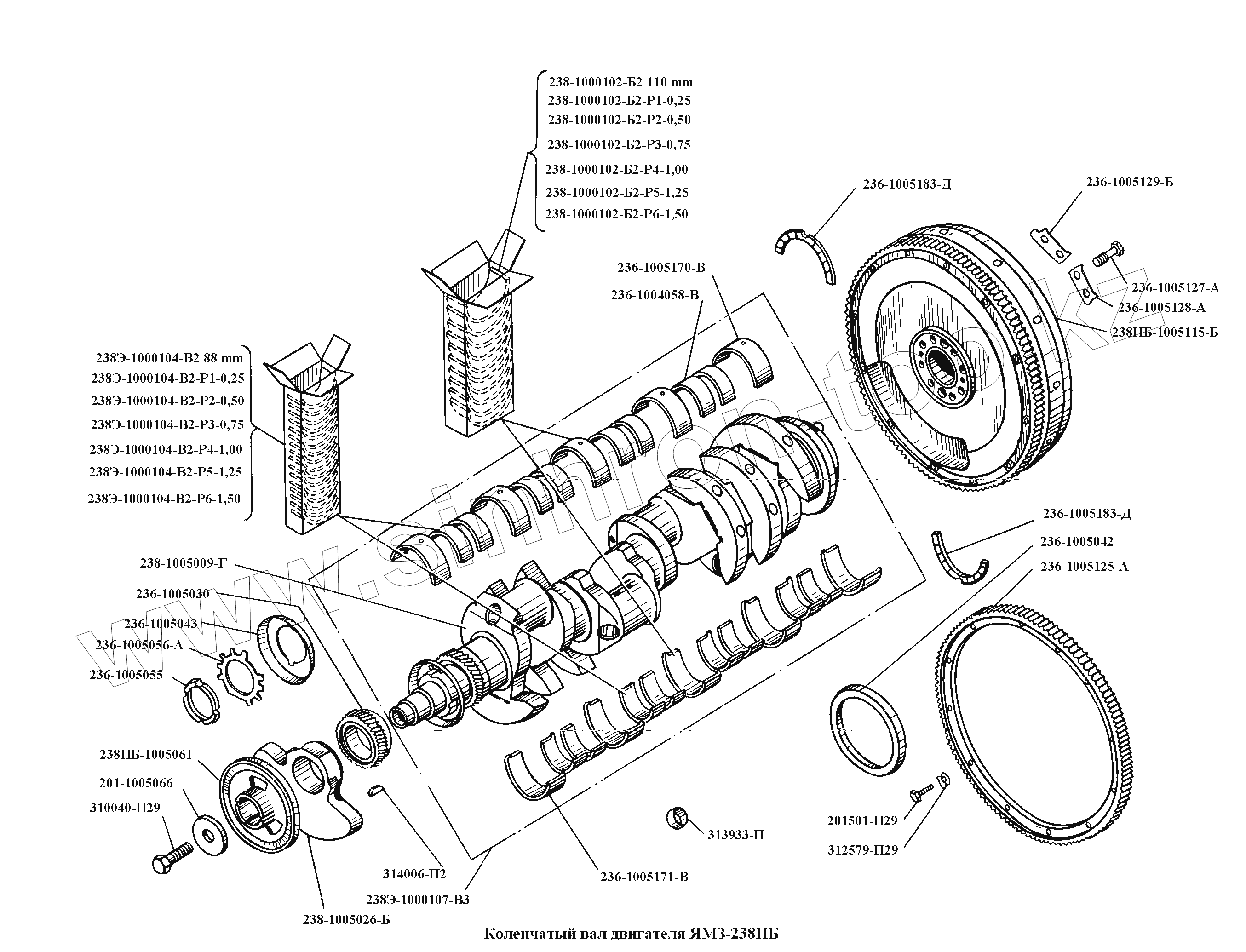 Каталог запасных частей к технике: ЯМЗ-236, -238, -238НБ. Коленчатый вал двигателя ЯМЗ-238