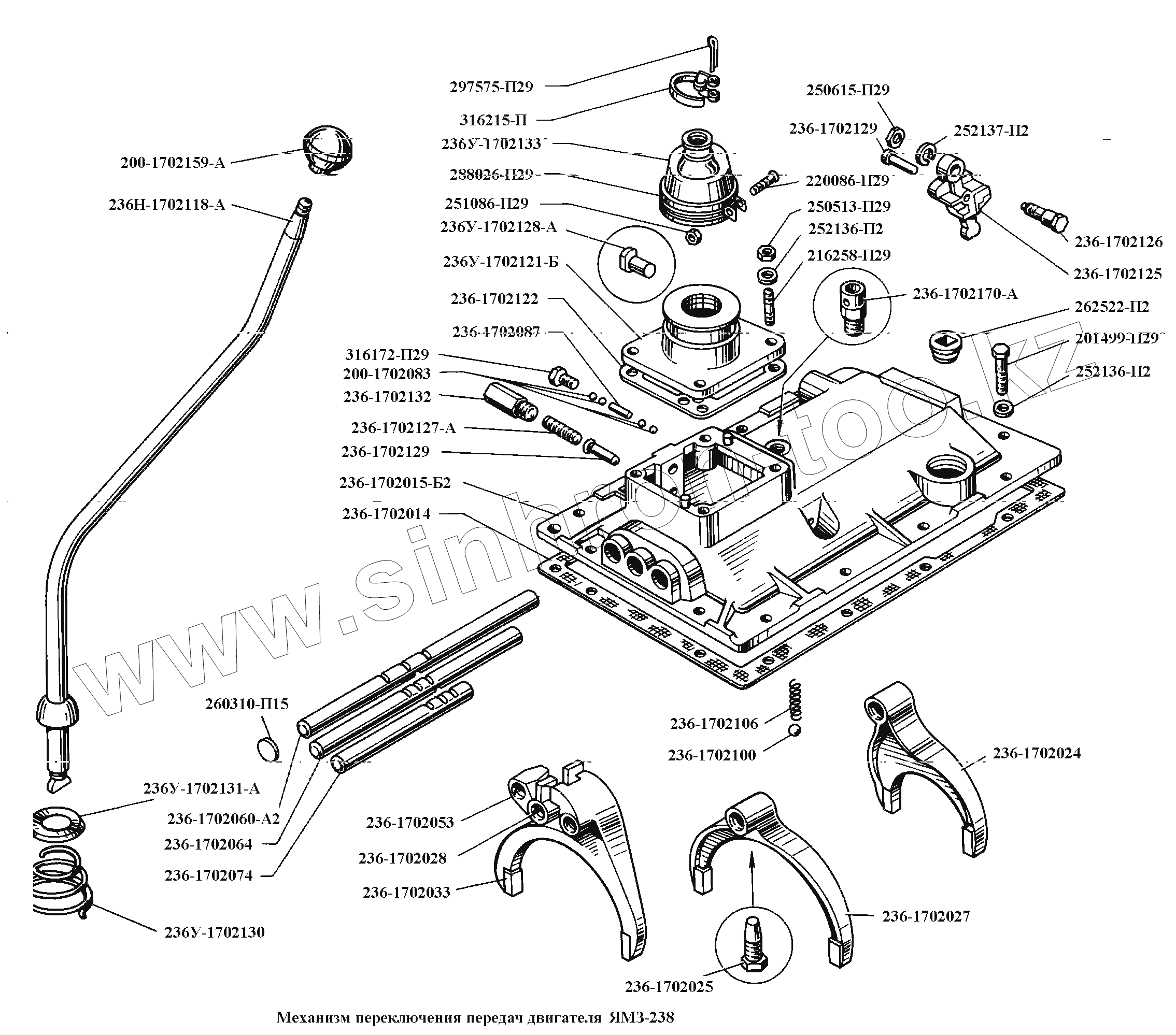 Каталог запасных частей к технике: ЯМЗ-236, -238, -238НБ. Механизм переключения передач двигателя ЯМЗ-238