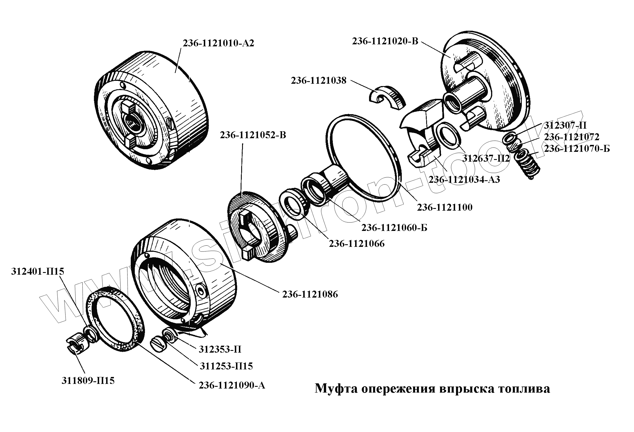 Каталог запасных частей к технике: ЯМЗ-236, -238, -238НБ. Муфта опережения впрыска топлива