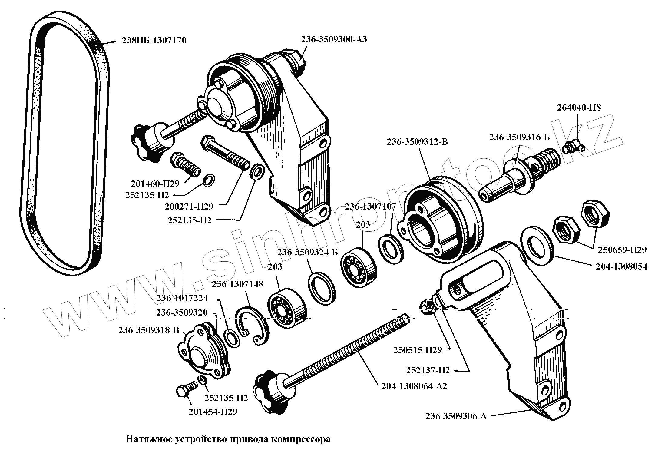 Каталог запасных частей к технике: ЯМЗ-236, -238, -238НБ. Натяжное устройство привода компрессора