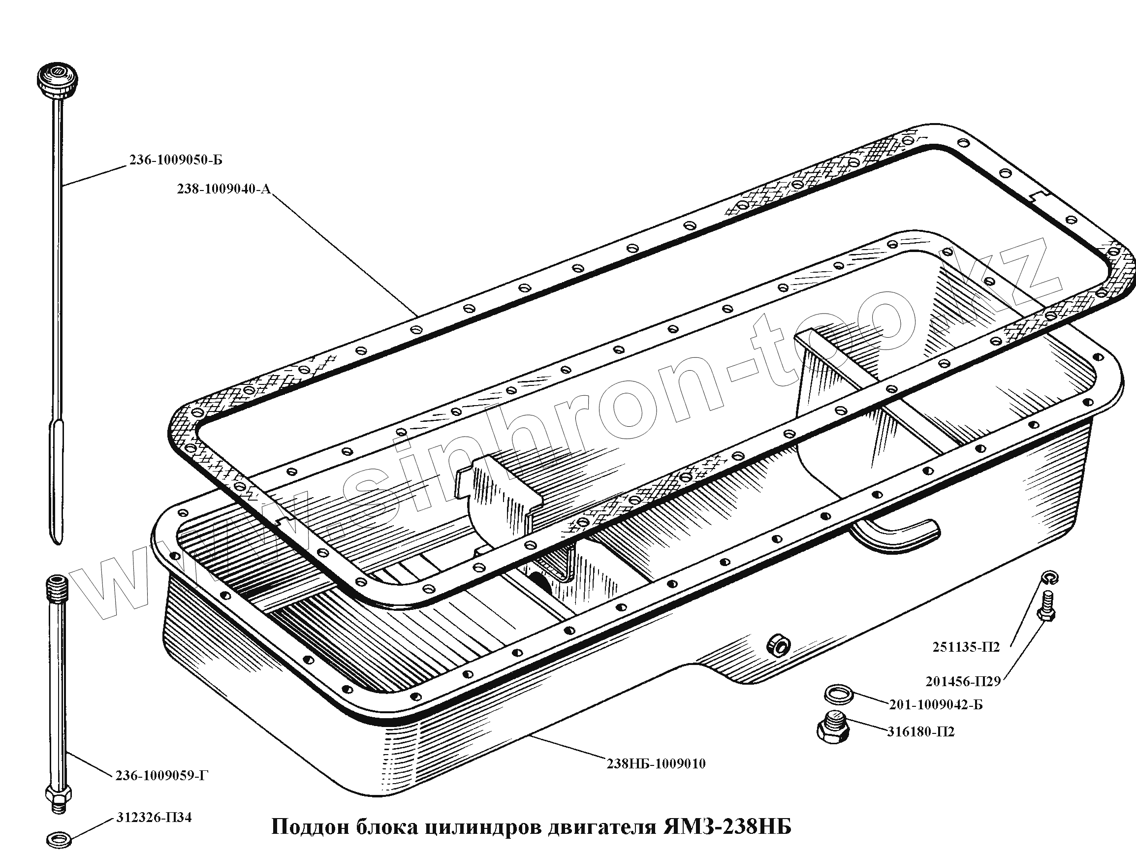 Каталог запасных частей к технике: ЯМЗ-236, -238, -238НБ. Поддон блока цилиндров двигателя ЯМЗ-238НБ