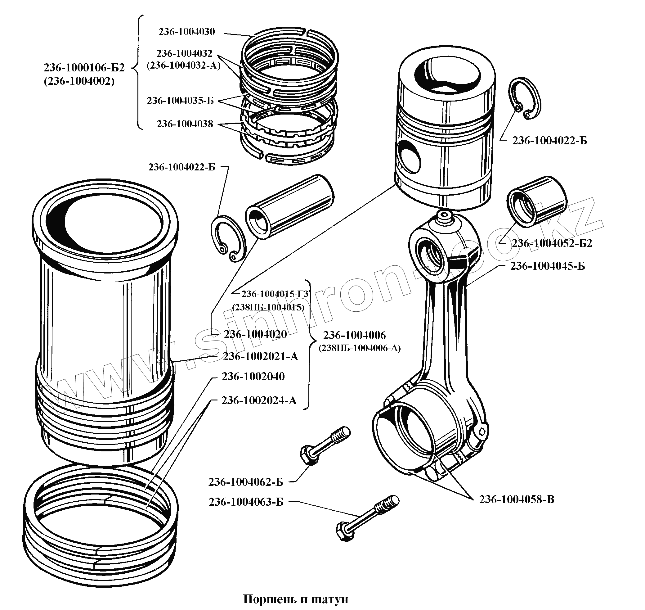 Каталог запасных частей к технике: ЯМЗ-236, -238, -238НБ. Поршень и шатун