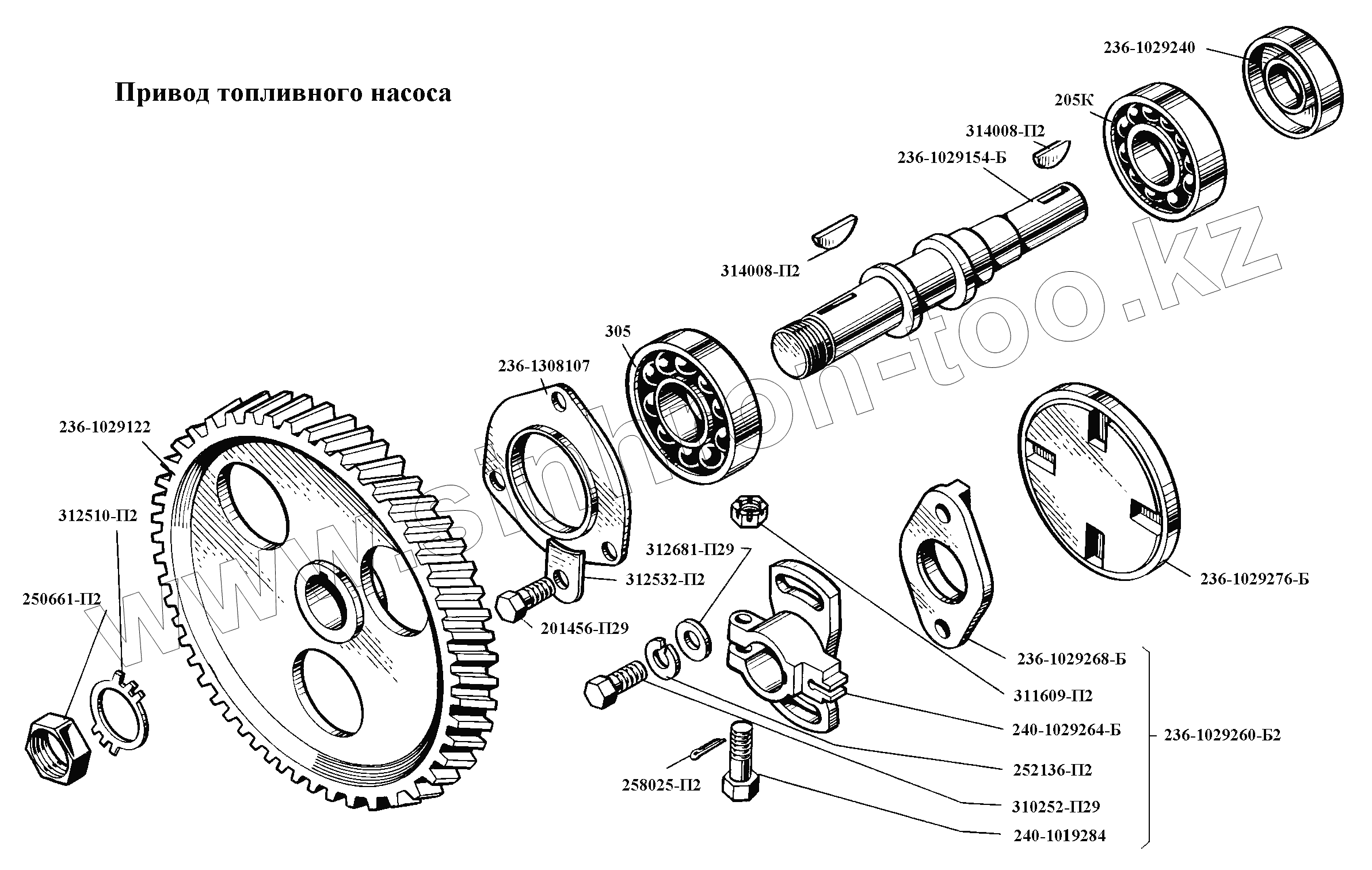 Каталог запасных частей к технике: ЯМЗ-236, -238, -238НБ. Привод топливного насоса