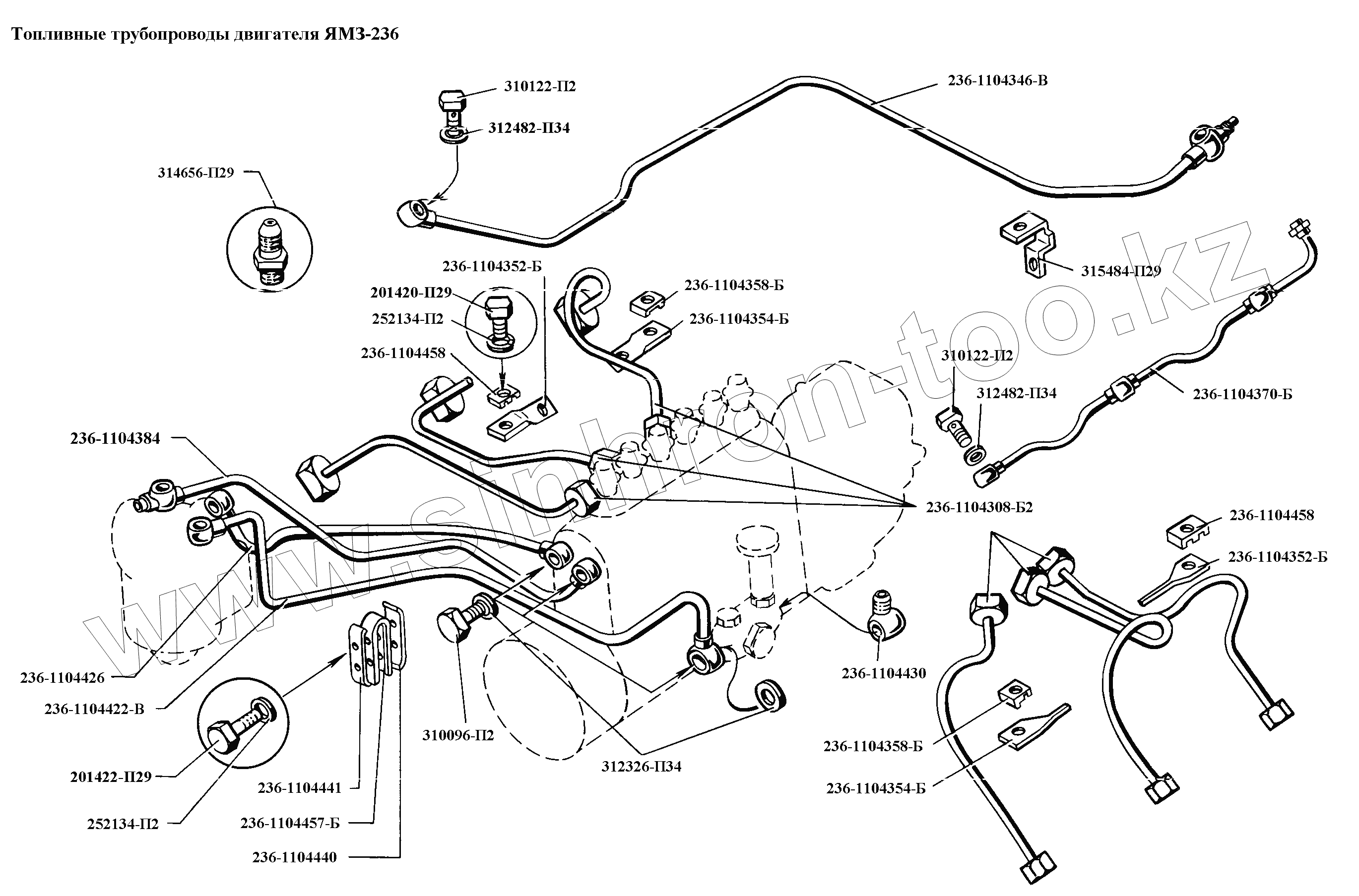 Каталог запасных частей к технике: ЯМЗ-236, -238, -238НБ. Топливные трубопроводы двигателя ЯМЗ-236