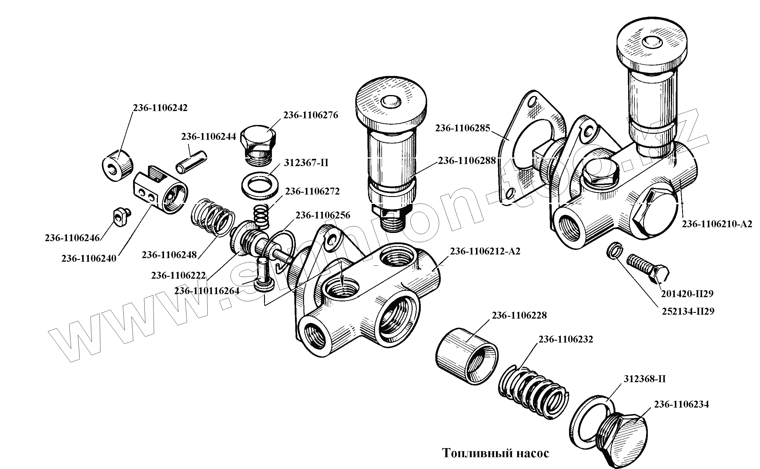 Каталог запасных частей к технике: ЯМЗ-236, -238, -238НБ. Топливный насос