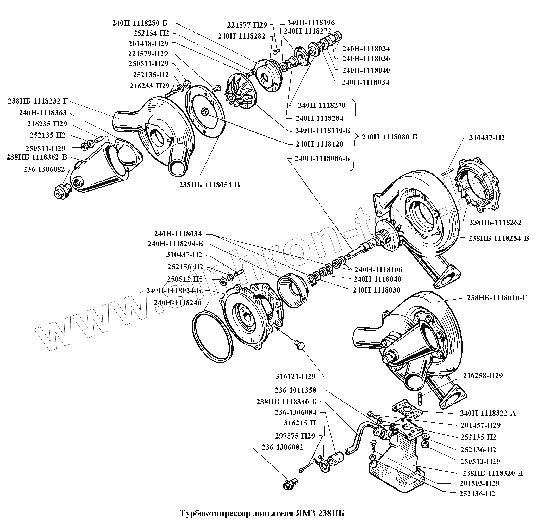 Каталог запасных частей к технике: ЯМЗ-236, -238, -238НБ. Турбокомпрессор двигателя ЯМЗ-238НБ