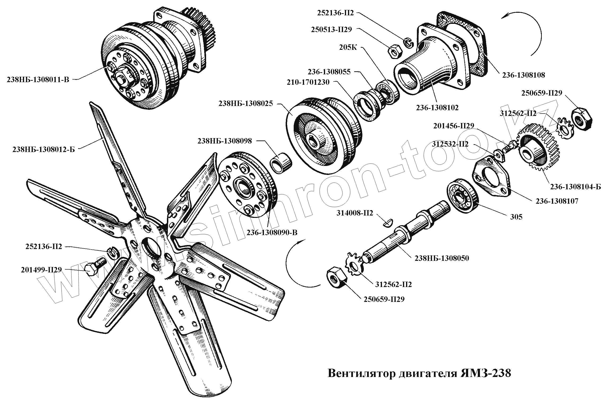 Каталог запасных частей к технике: ЯМЗ-236, -238, -238НБ. Вентилятор двигателя ЯМЗ-238НБ