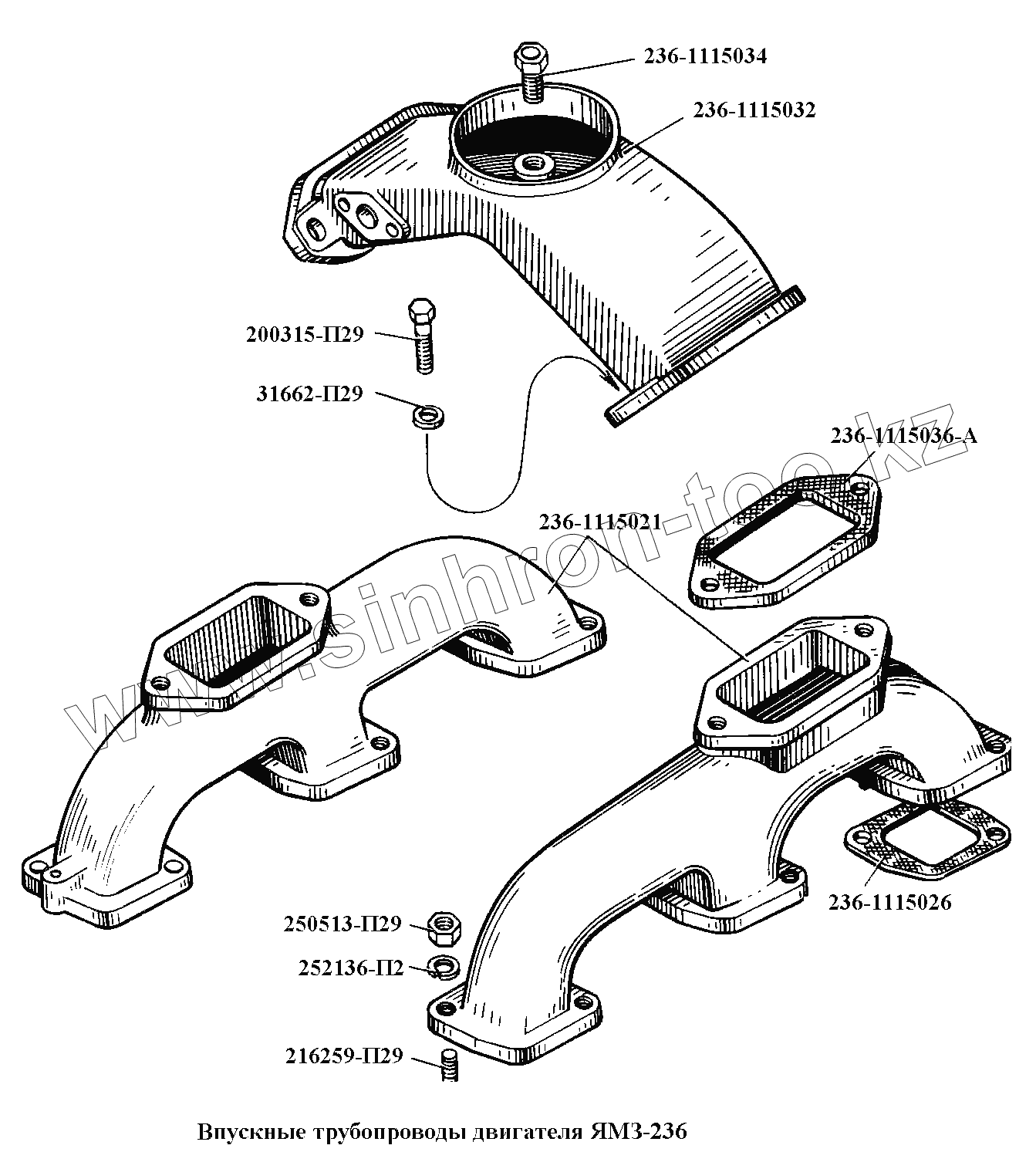 Каталог запасных частей к технике: ЯМЗ-236, -238, -238НБ. Впускные трубопроводы двигателя ЯМЗ-236