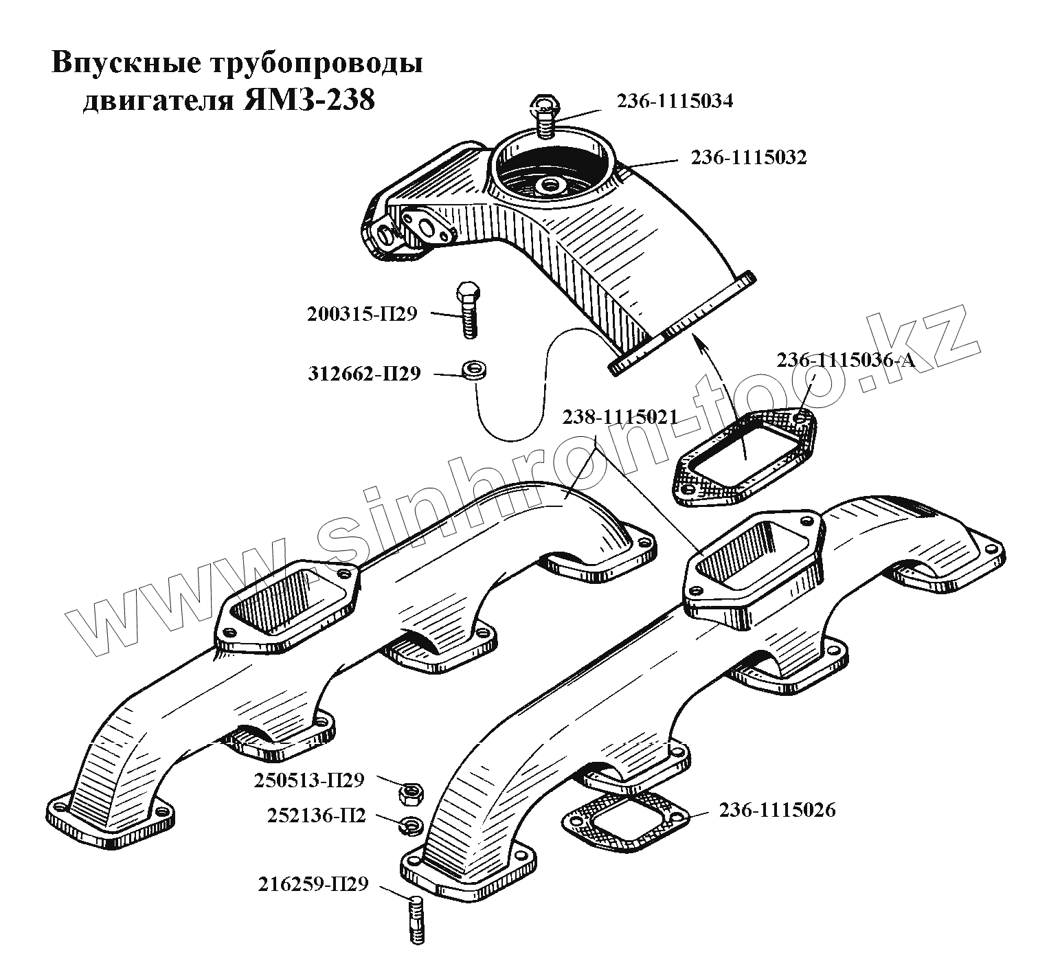 Каталог запасных частей к технике: ЯМЗ-236, -238, -238НБ. Впускные трубопроводы двигателя ЯМЗ-238