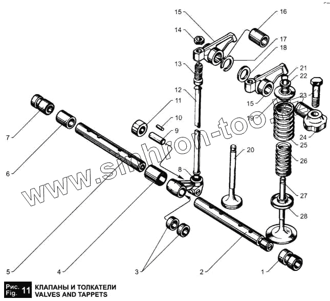 Каталог запасных частей к технике: ЯМЗ-236 М2 и 238 М2. Клапаны и толкатели