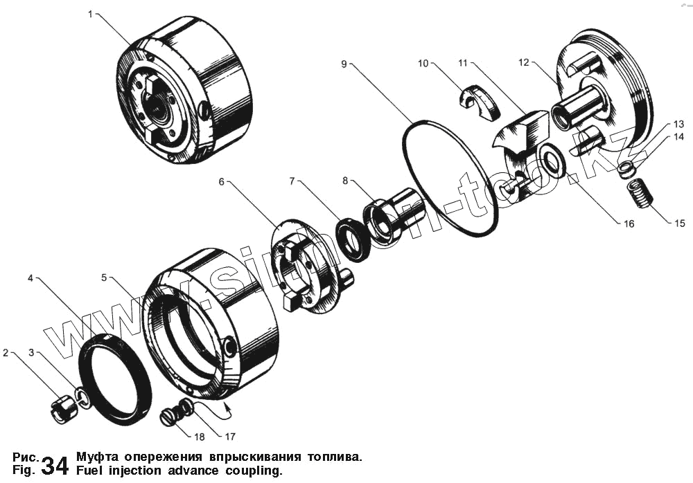 Каталог запасных частей к технике: ЯМЗ-236 М2 и 238 М2. Муфта опережения впрыскивания топлива