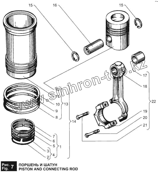 Каталог запасных частей к технике: ЯМЗ-236 М2 и 238 М2. Поршень и шатун