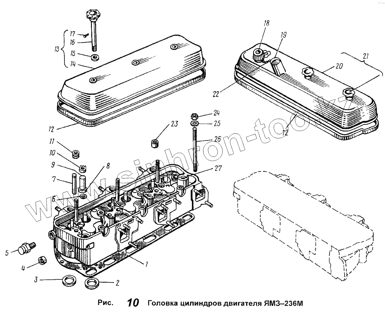 Каталог запасных частей к технике: ЯМЗ-236 М. Головка цилиндров двигателя ЯМЗ-236М