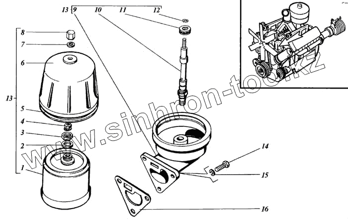 | 13 | 236-1028010 | Фильтр центробежной очистки масла в сборе | |