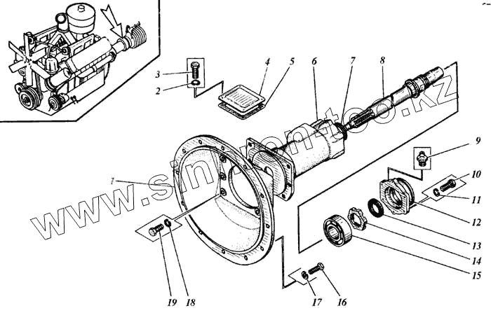 Каталог запасных частей к технике: ЯМЗ-238 АК. Установка механизма отбора мощности