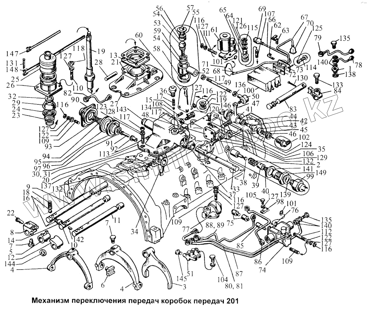 Каталог запасных частей к технике: ЯМЗ-238 АМ. Механизм переключения передач коробок передач 201