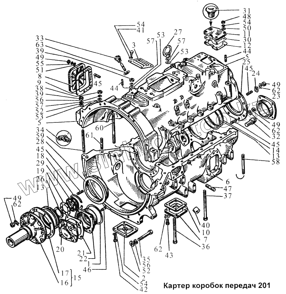 Каталог запасных частей к технике: ЯМЗ-238 ГМ. Картер коробок передач 201
