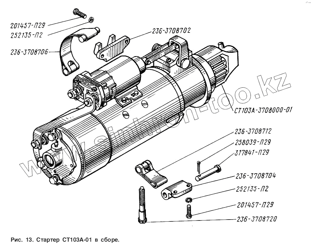 Каталог запасных частей к технике: ЯМЗ-238 Л. Стартер СТ103А-01 в сборе