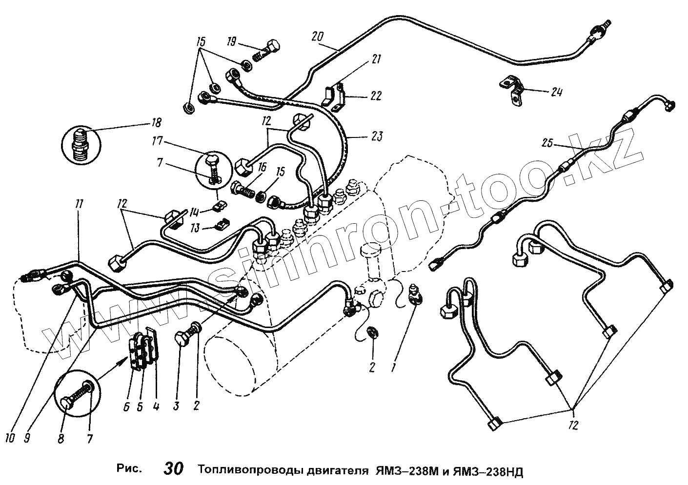 Каталог запасных частей к технике: ЯМЗ-238 М. Топливопроводы двигателей ЯМЗ-238М и ЯМЗ-НД
