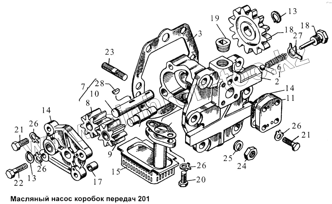 Каталог запасных частей к технике: ЯМЗ-238 НД. Масляный насос коробок передач 201