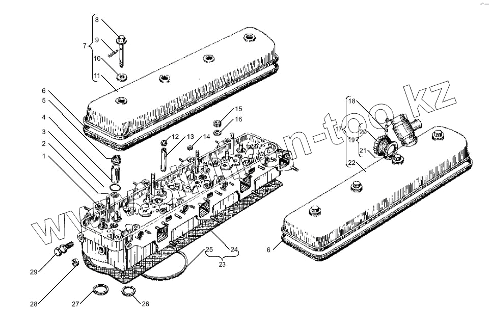 Каталог запасных частей к технике: ЯМЗ-238БЕ. Головка цилиндров двигателей ЯМЗ-238БЕ, ЯМЗ-238ДЕ