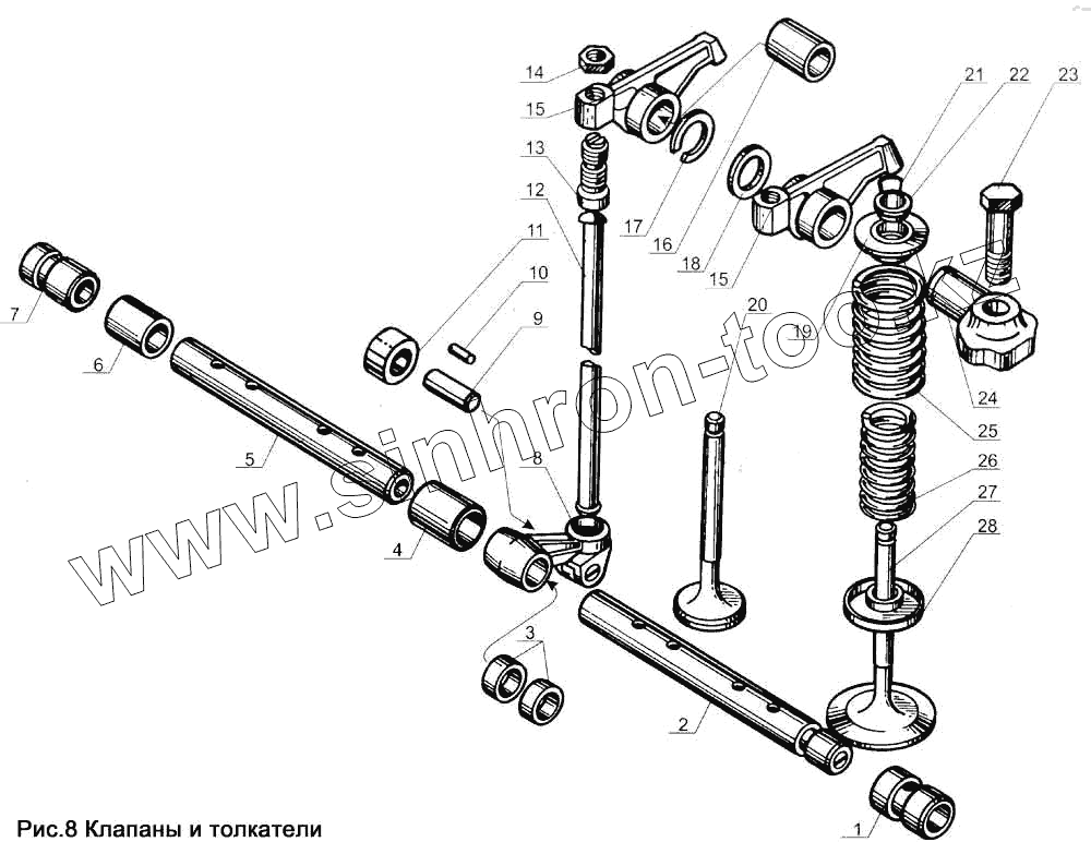 Каталог запасных частей к технике: ЯМЗ-238Д и Б. Клапана и толкатели