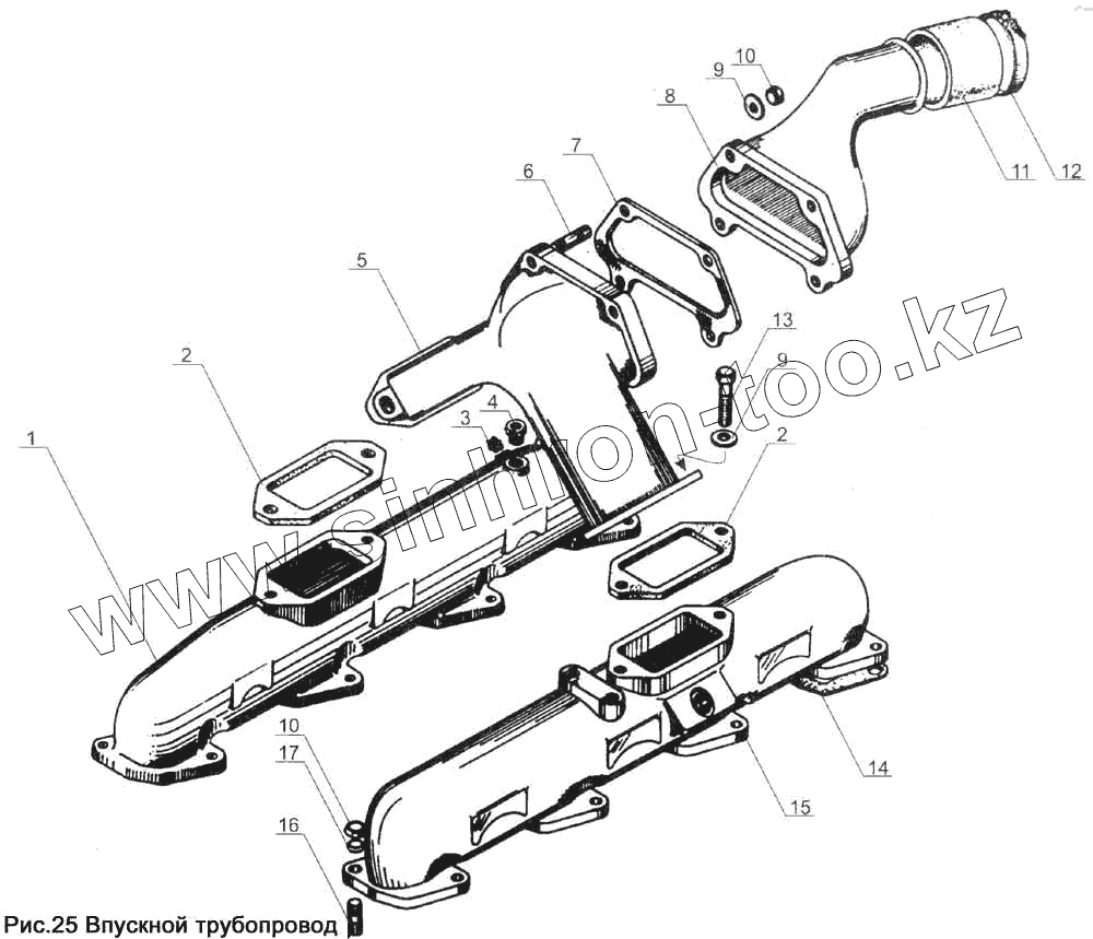 Каталог запасных частей к технике: ЯМЗ-238Д и Б. Впускной трубопровод