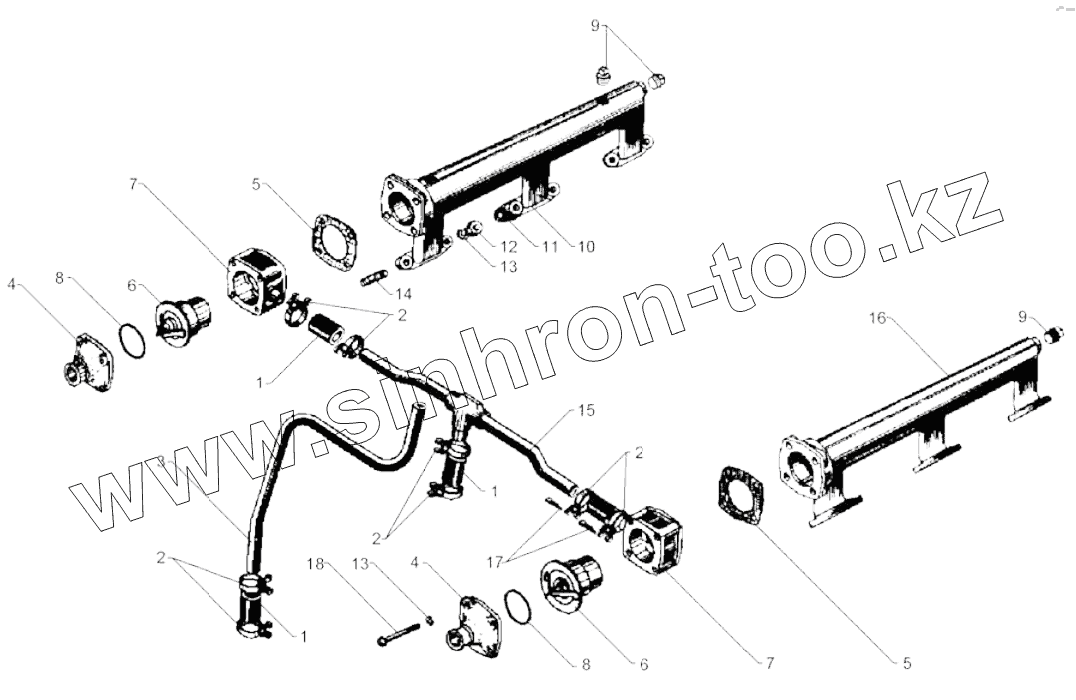 Каталог запасных частей к технике: ЯМЗ-238М2. Трубопроводы и термостаты системы охлаждения