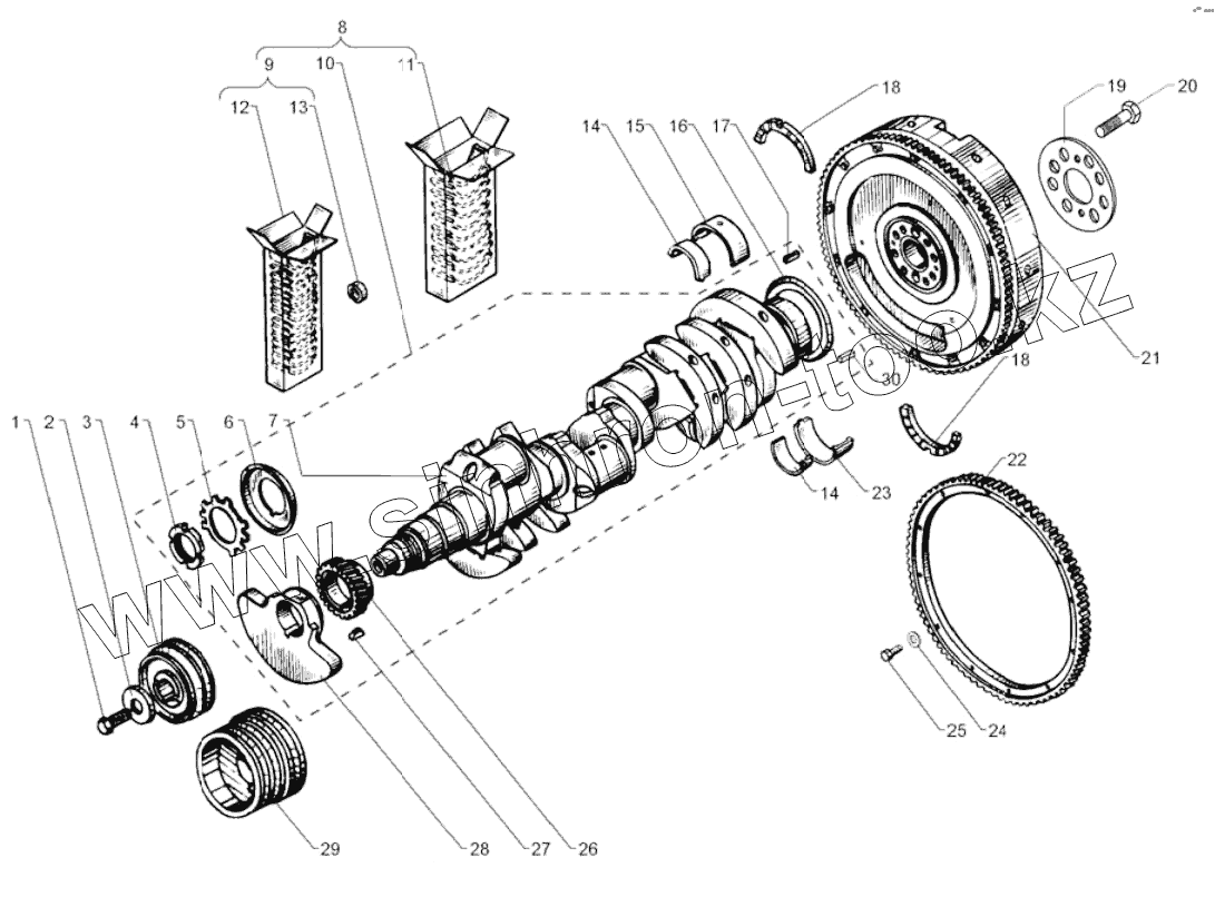Каталог запасных частей к технике: ЯМЗ-238М2. Вал коленчатый и маховик