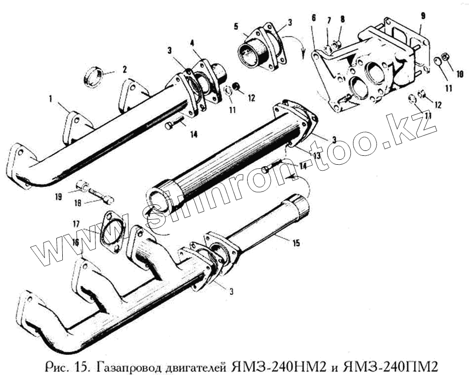 Каталог запасных частей к технике: ЯМЗ-240. Газопровод двигателя ЯМЗ-240НМ2 и ЯМЗ-240ПМ2