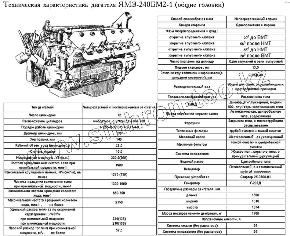 Техническая характеристика ЯМЗ-240БМ2-1 (общие головки)