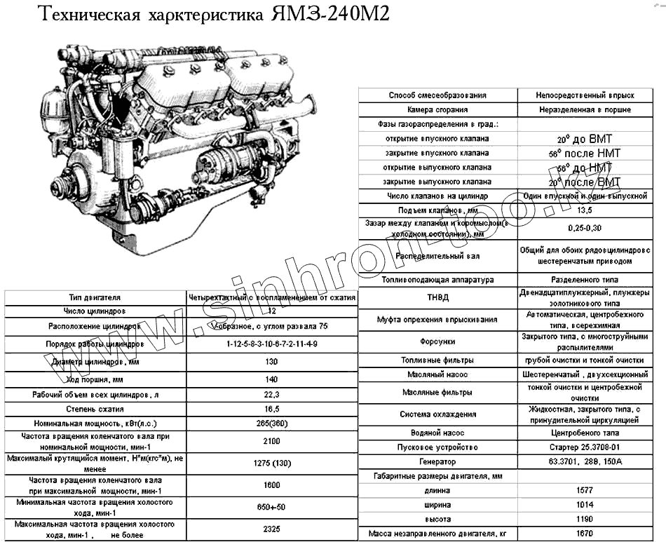 Техническая характеристика ЯМЗ-240М2