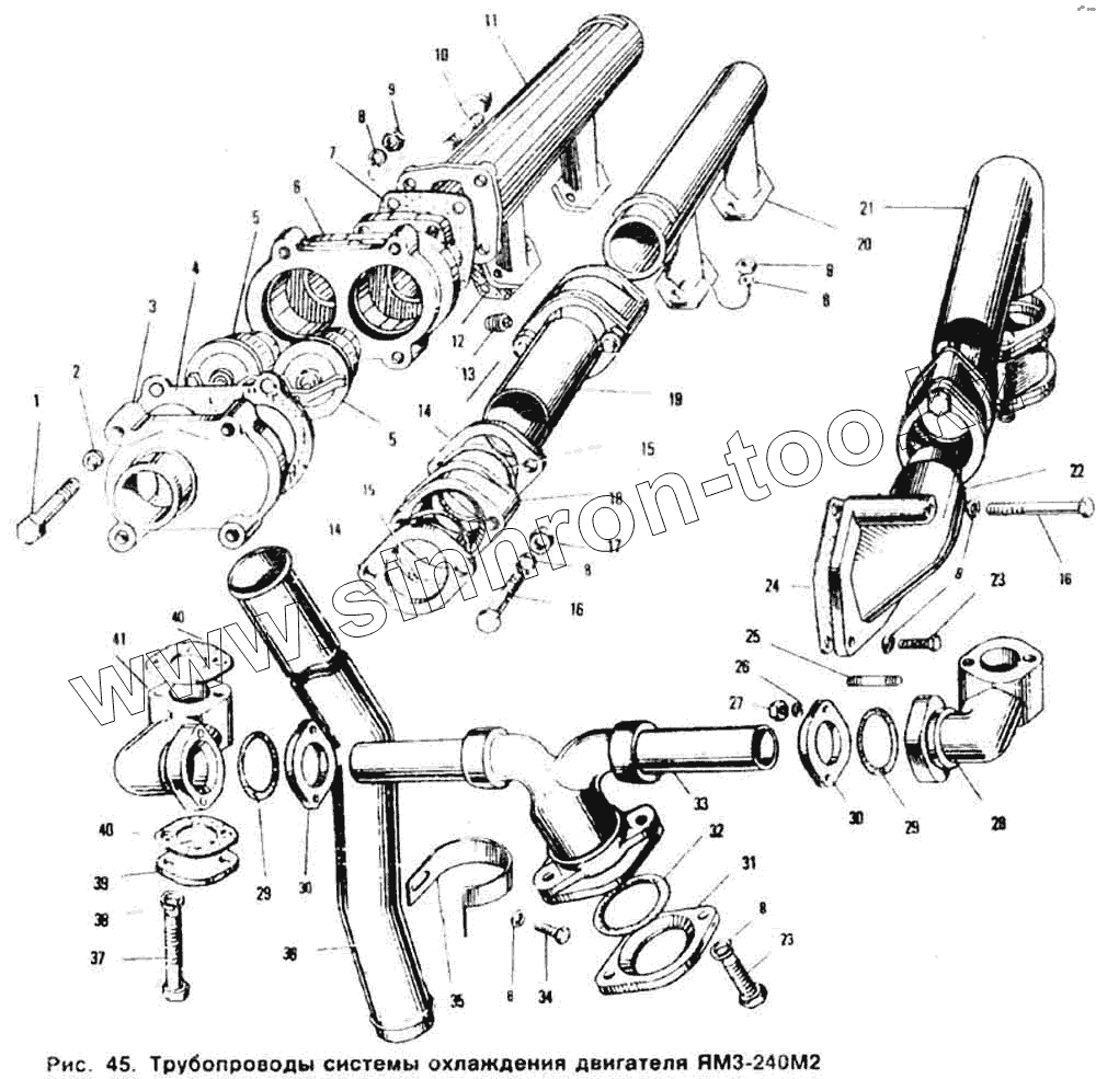 Каталог запасных частей к технике: ЯМЗ-240. Трубопроводы системы охлаждения двигателя ЯМЗ-240М2