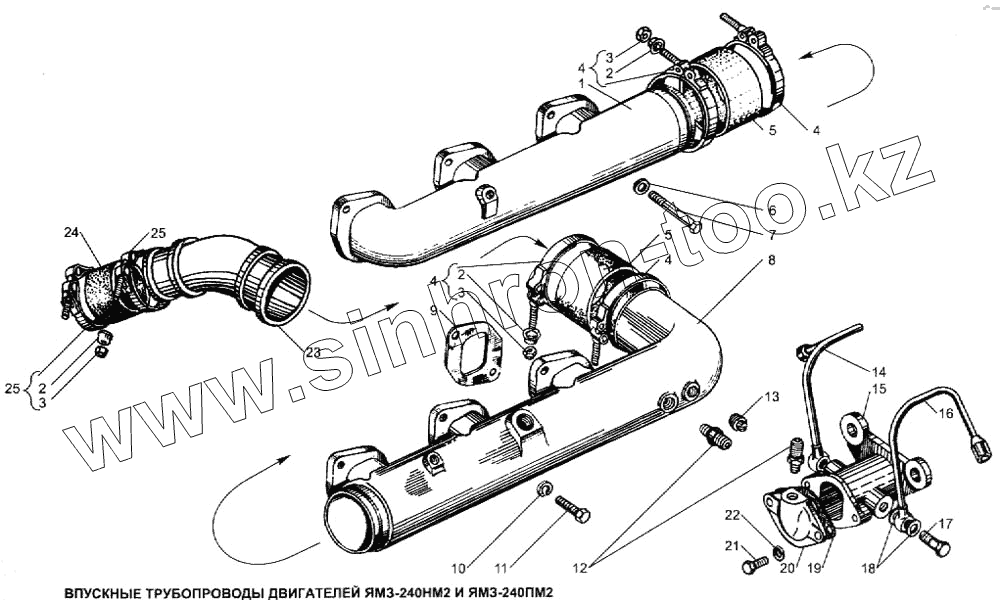 Каталог запасных частей к технике: ЯМЗ-240. Впускные трубопроводы двигателей ЯМЗ-240НМ2 и ЯМЗ-240ПМ2