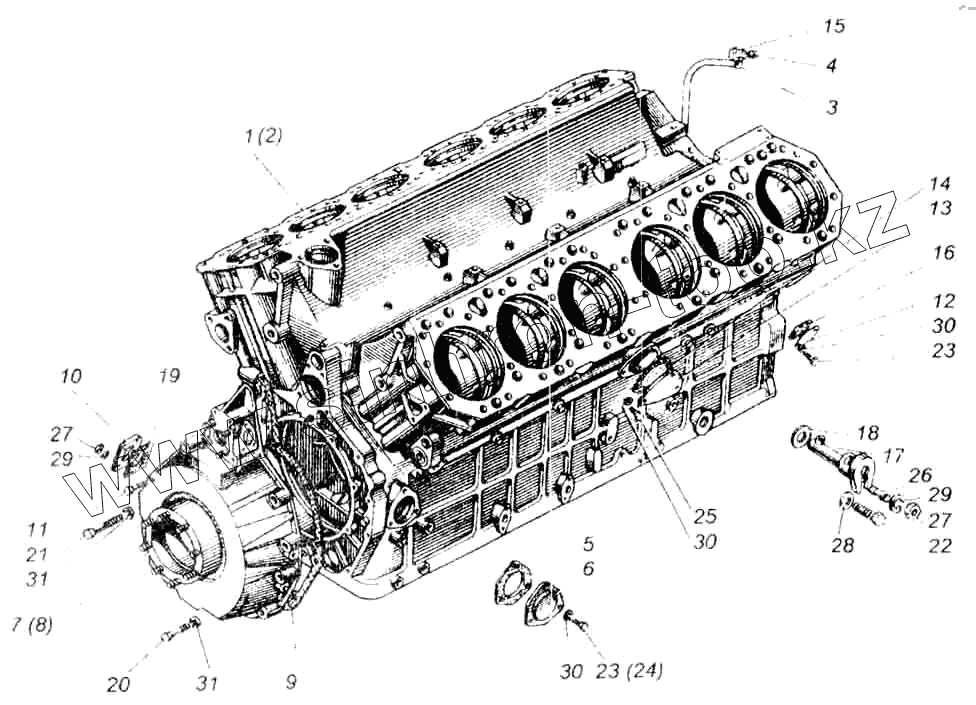 Каталог запасных частей к технике: ЯМЗ-240, 240Б, 240Н, 240П. Блок цилиндров