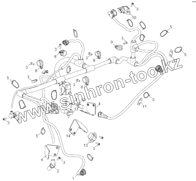 Каталог запасных частей к технике: ЯМЗ-534. 5344.3724011-10 Установка жгута датчиков