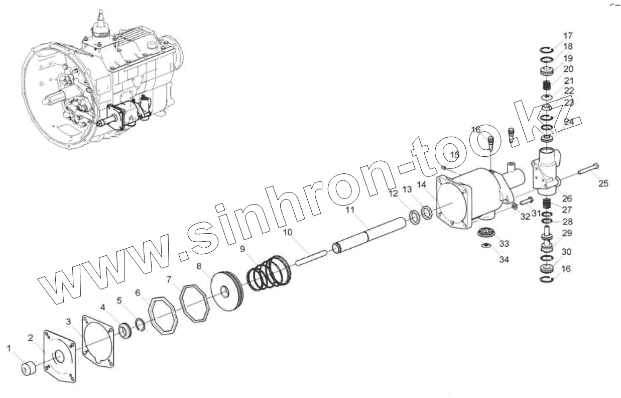 Каталог запасных частей к технике: ЯМЗ-536-100. Пневмогидравлический усилитель привода выключения сцепления
