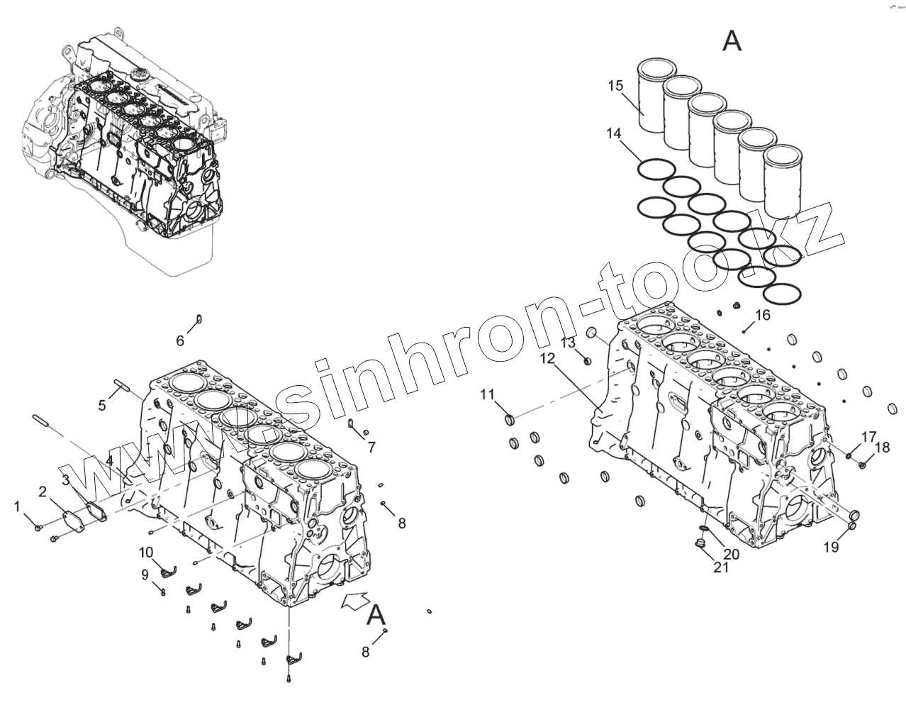Каталог запасных частей к технике: ЯМЗ-536. Блок цилиндров 536-30-100200-010