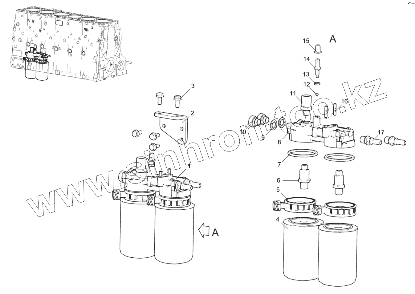 Корпус топливного фильтра с ввертышами