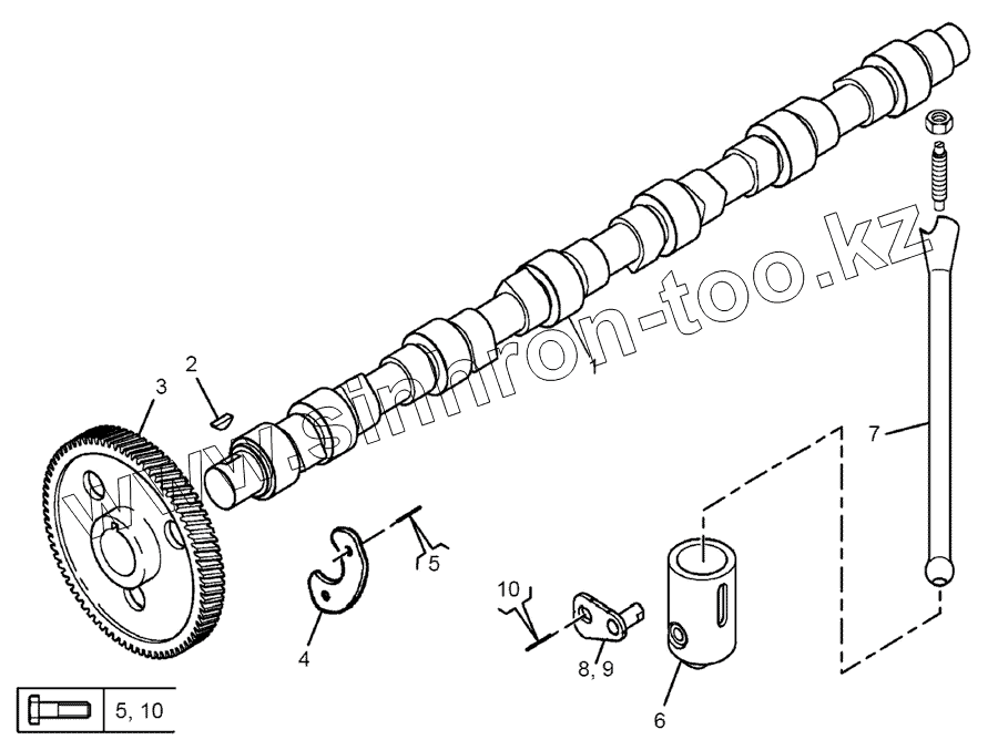 Каталог запасных частей к технике: ЯМЗ-650.10 (Евро 3). Вал распределительный, штанги, толкатели