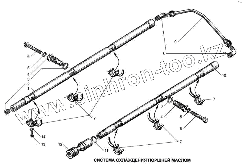Каталог запасных частей к технике: ЯМЗ-6561.10 (Евро 3). Система охлаждения поршней маслом