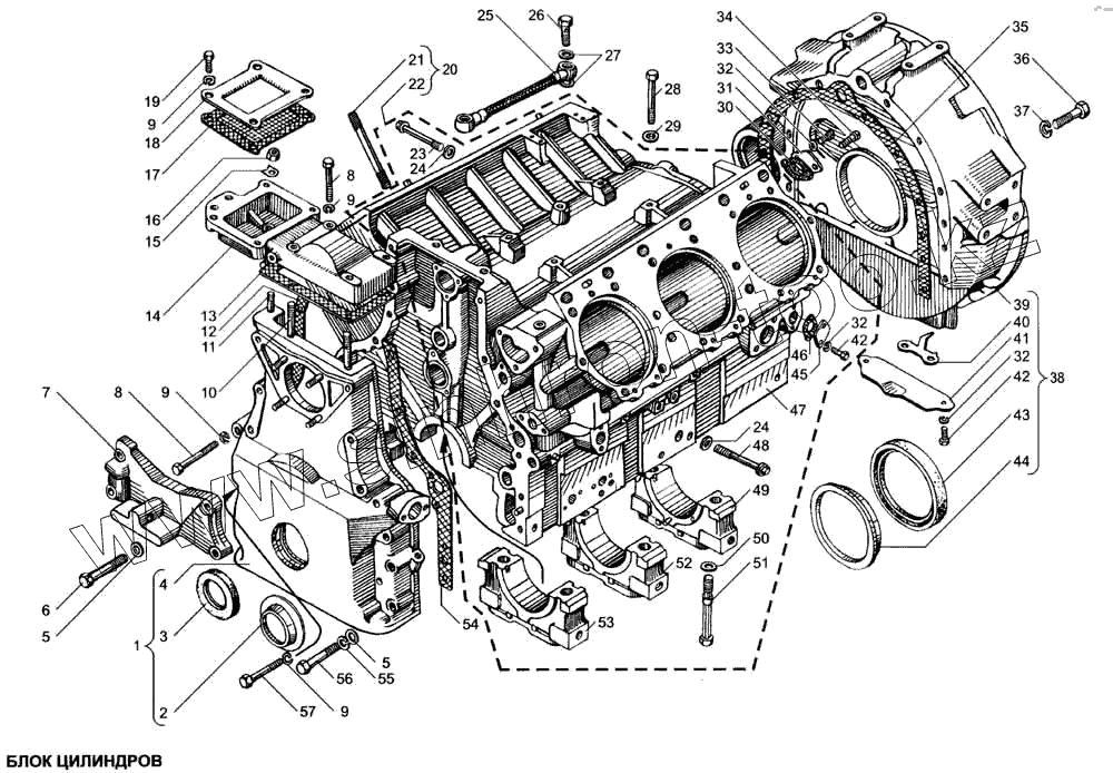 Каталог запасных частей к технике: ЯМЗ-6562.10 (Евро 3). Блок цилиндров